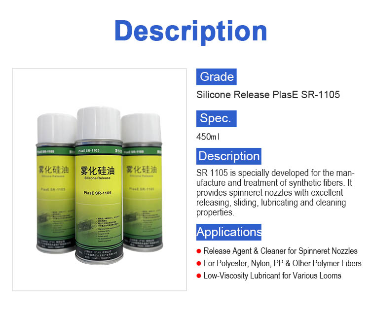 PlasE® SR 1105 High-temp atomized silicone oil for synthetic fiber processing. Features long service cycle, reliable lubrication & extreme heat stability to reduce costs.